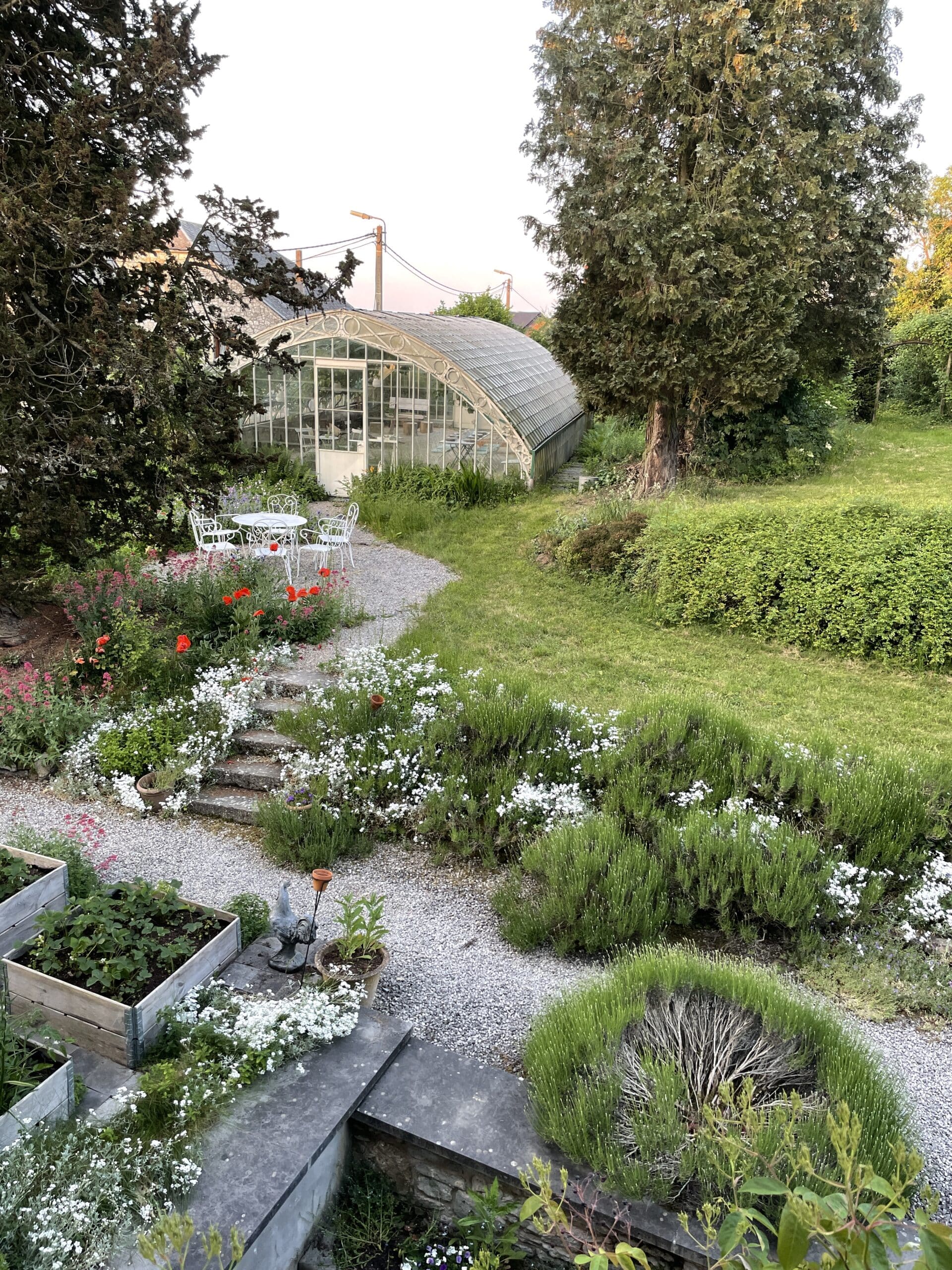 en Province de namur dans une maison style gite de charme avec son grand jardin et sa serre